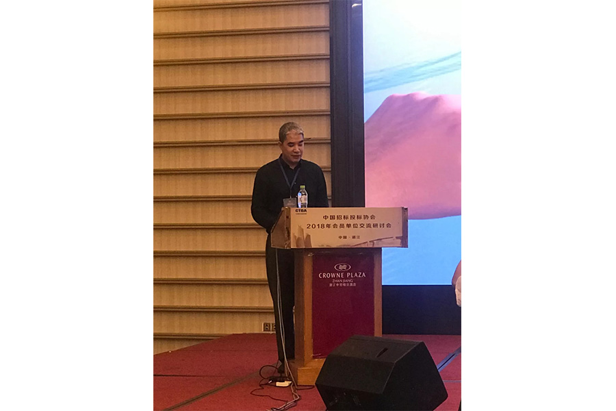 “港城”湛江作为我国首批“一带一路”海上合作支点城市,此次迎来了一个权威的会议。为深入学习贯彻党的十九大精神,研究、探讨招标投标行业发展趋势,把握行业发展方向,交流创新发展经验,通报行业最新情况,11月15日,CTBA(中国招标投标协会)2018年会员单位交流研讨会在广东省湛江市召开。国家发展改革委法规司处长何瑞琦、财政部国库司干部翟彤彤和法律顾问孙鹏出席会议并介绍有关情况。中国工程造价管理协会专家委员会常务副主任吴佐民、必联(北京)电子商务科技有限公司首席执行官吴树贵应邀做专题演讲。中国招标投标协会会长任珑出席会议并致辞,副会长贾建华、李小林、石国虎、顾凌波出席会议。浙江中诚作为协会会员单位,应邀出席本次会议,并以“现代信息技术为主导的工程管理服务理念”得到广泛的关注。